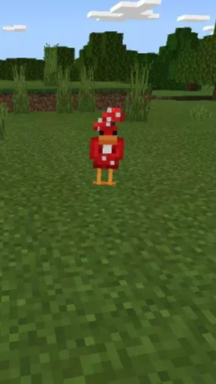 Some mobs in Earth Mobs Mod will look very unusual, for example, bright red chickens covered with white spots. They are also called a mushroom, perhaps because of the fungus on their head.