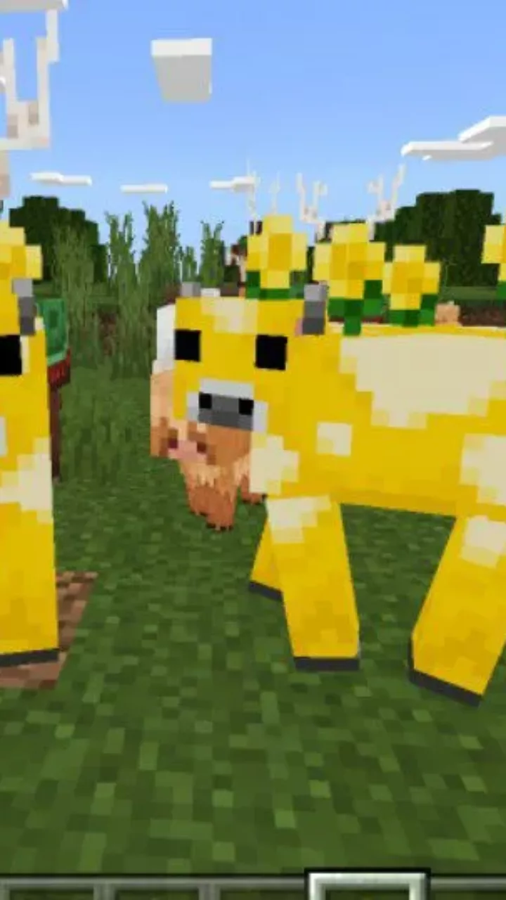 The latter will have a yellow color and live in biomes with flowers. Another type of cow will have a brown color. Do not forget to trim them to extract wool from these animals.