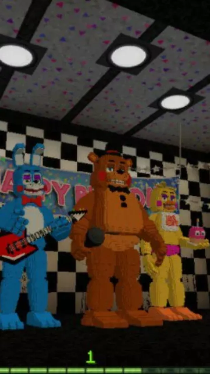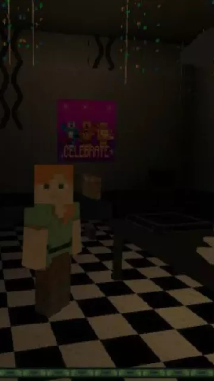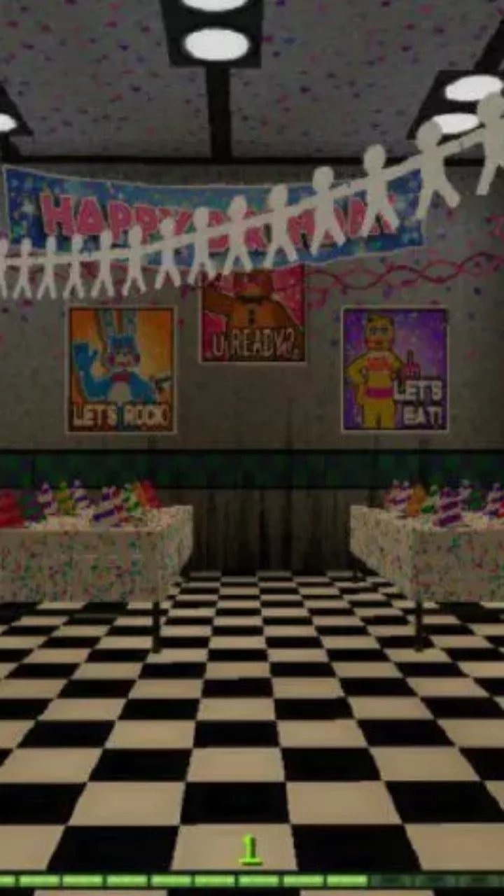 Another version of the location based on the plots of the famous story is offered to players by the authors of this FNAF 2 Map add-on. The cheerful and joyful atmosphere of a children’s holiday with balloons and garlands is adjacent here with dirty walls and flickering light.