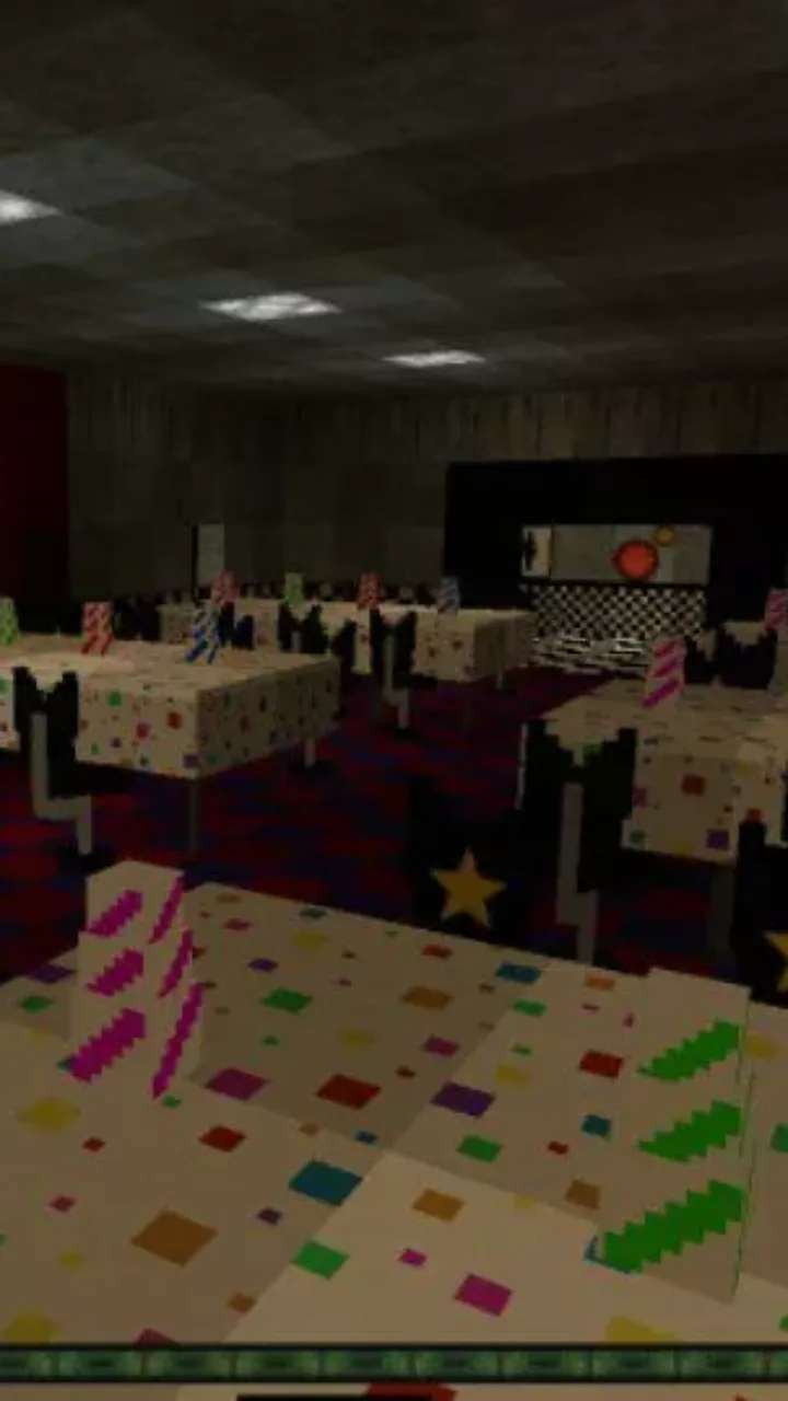 Every user who installs this add-on for Freddy Fazbear Pizza Maps will have a chance to get acquainted with the famous location and its inhabitants. On the territory, you can find a lot of redstone mechanisms that control doors, curtains, and other objects.
