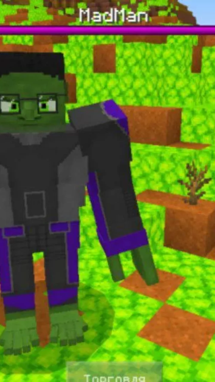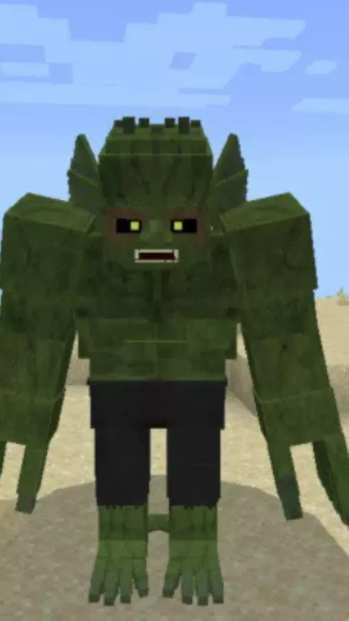 Download Hulk Mod for Minecraft Bedrock Edition: turn into a very powerful and aggressive monster that can defeat any opponent.