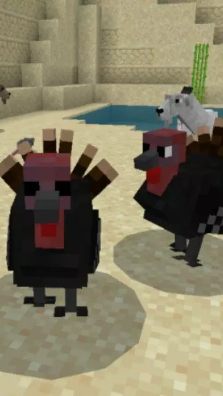 Also, the list of birds in Minecraft Bedrock will greatly expand. Guinea fowls, turkeys, and ducks will appear in it. Birds will build nests and lay eggs. For reproduction, feed them seeds more often.