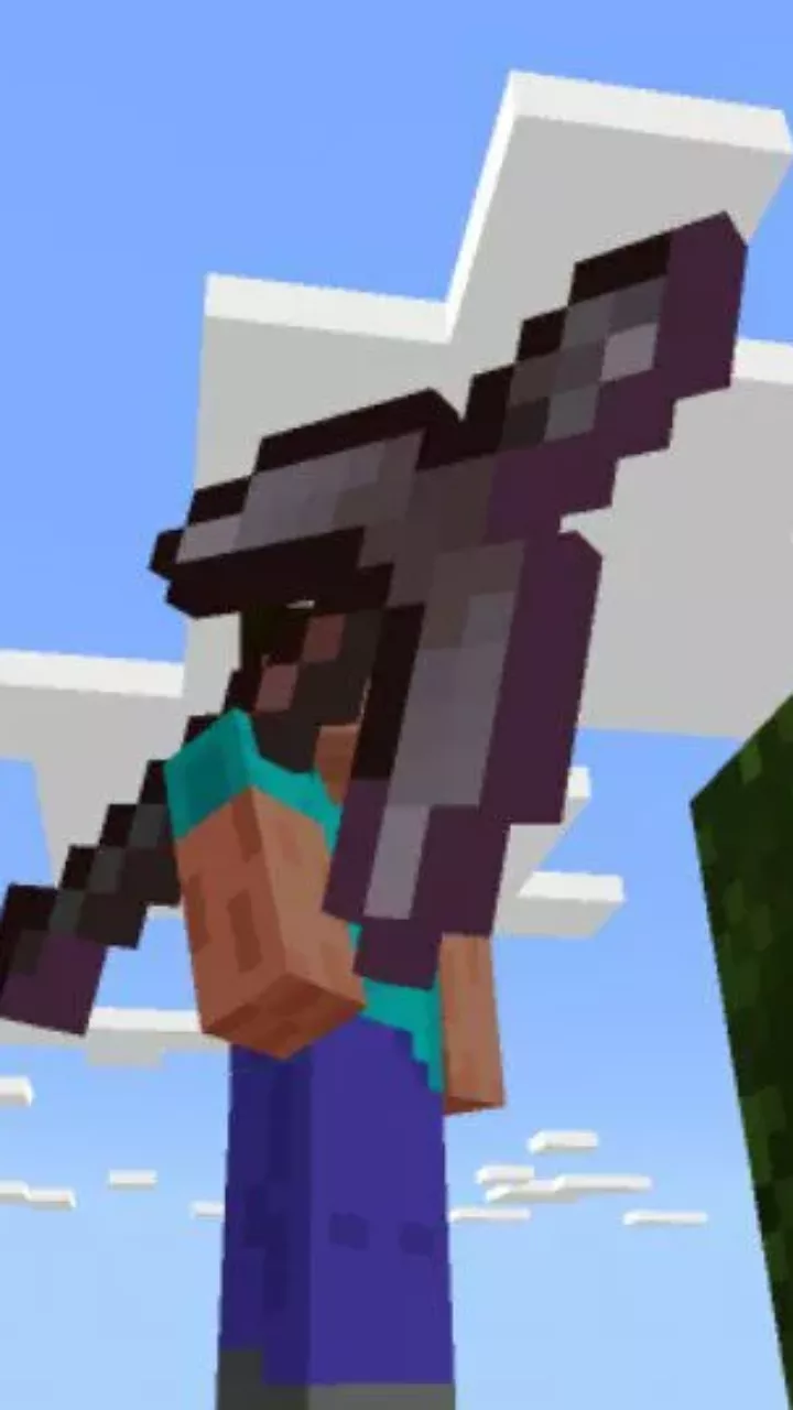 There are 6 versions of this object in total, which are made of basic materials. The most durable of the netherite and has a strength of 3,300 units and deals damage equal to 14 units.