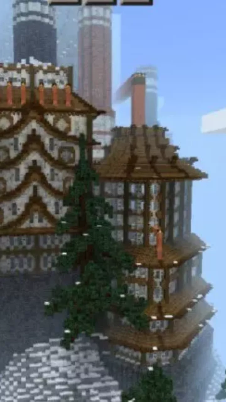 Another location made in this amazingly beautiful style offers Minecraft Bedrock players the to go to the flying islands. On them, they will find spacious territories, as well as various buildings.