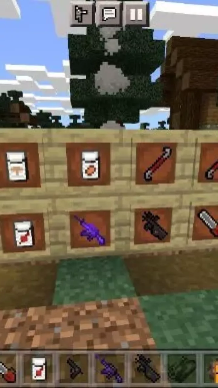 Fortunately, in the Inventory of the Creative Mode, users will find a large number of different items to deal with them. These are various firearms, such as pistols and shotguns. Also, to be able to quickly satisfy hunger in dangerous conditions, players can use canned food.